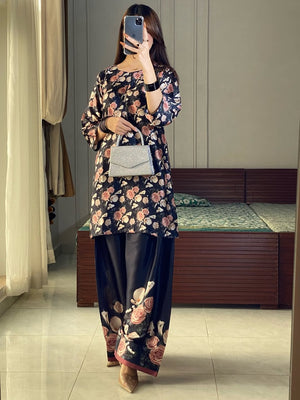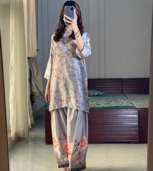 Experience timeless elegance with our Shamooz Silk 2-Piece Suit, beautifully paired with a traditional Farshi Shalwar. Designed for luxury, comfort, and premium shine, this outfit is perfect for weddings, festive events, and formal gatherings.
